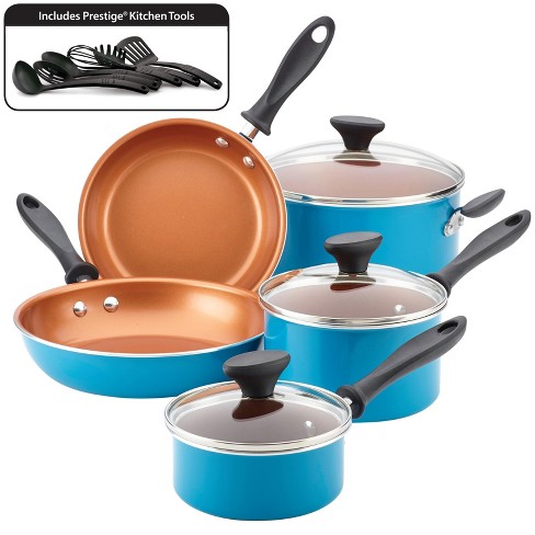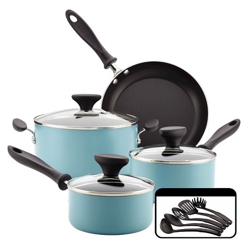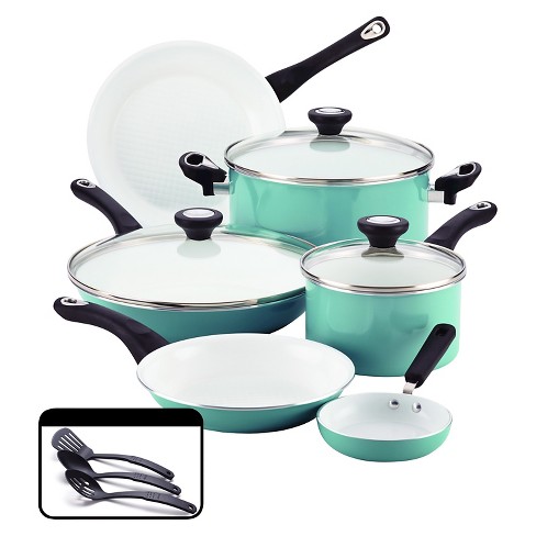 Farberware ceramic nonstick cookware pots and pans set 12 piece aqua.